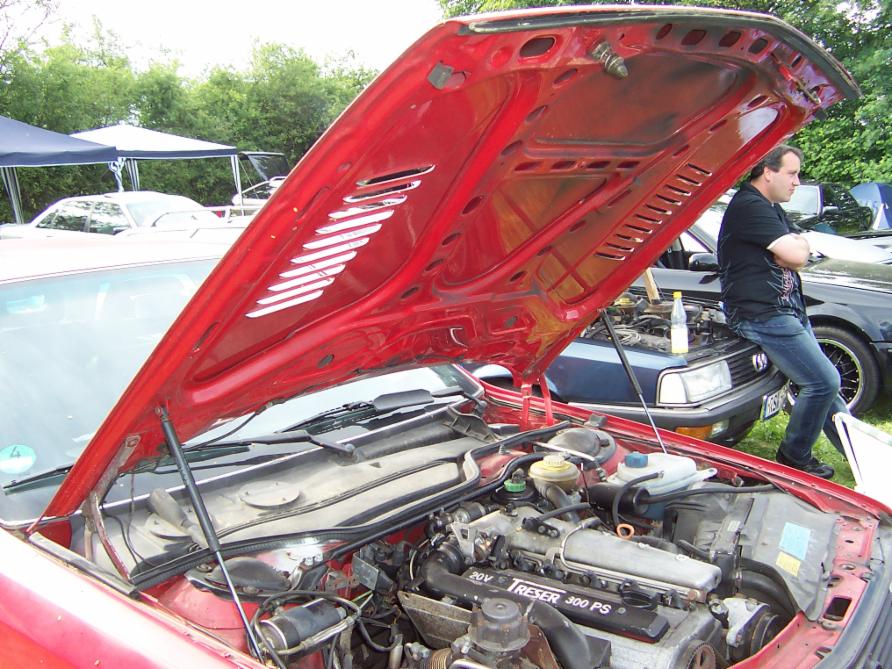 Ein roter 200 20V mit Motorhaubenentlüftung der besonderen Art.