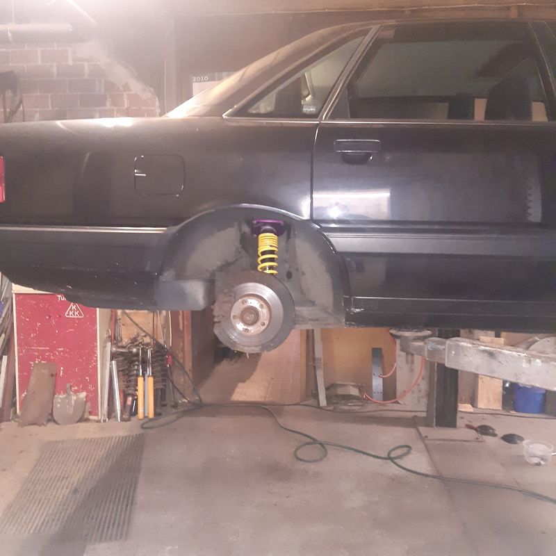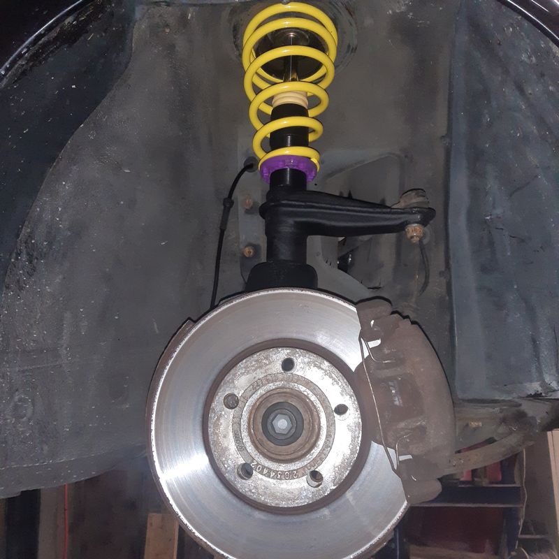 Da er mir noch zu hoch war und die Stossdämpfer sowieso defekt waren, haben wir ein KW V1 verbaut um die Höhe genau anpassen zu können.